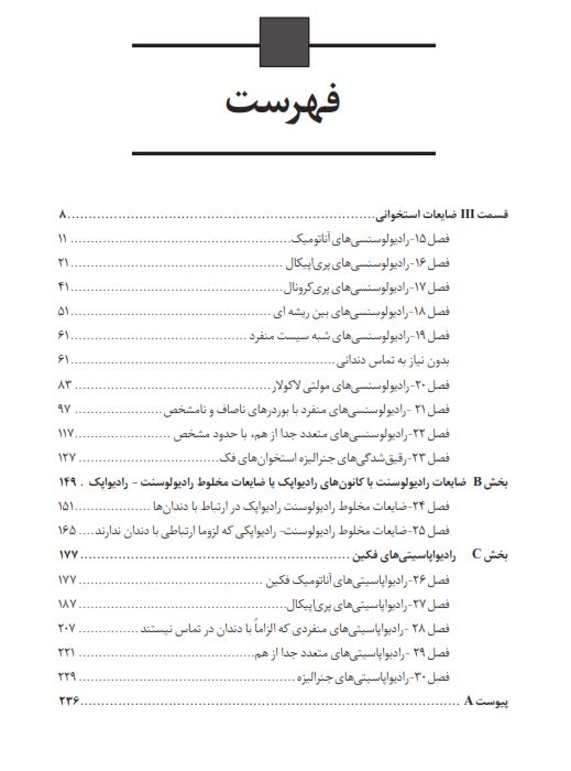 این کتاب چکیدهای از ویرایش پنجم کتاب Differential Diagnosis of Oral and Maxillofacial Leasions تالیف Norman K. wood و Paul W. Goaz میباشد. چکیده این کتاب بر اساس ترجمه کامل مبحث ضایعات استخوانی این کتاب صورت گرفته است. در این چکیده تلاش بر آن بوده که کلیه نکات مهم و اساسی کتاب حفظ گردد تا ساختار کلی مطالب برای خواننده قابل درک باشد. از آنجا که تنها تعداد محدودی از تصاویر کتاب در این چکیده مورد استفاده قرار گرفته است، لذا توصیه می شود که در صورت لزوم به ترجمه کامل کتاب مراجعه گردد.