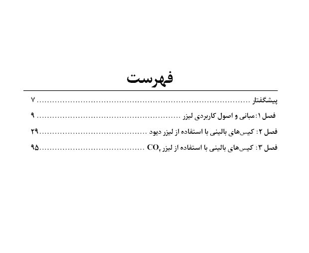در سالهای اخیر ایده استفاده از لیزر در دندانپزشکی به صورت فراگیری مورد استقبال قرار گرفته است، توجه به این نکته مهم که کاربرد لیزر در حیطه دندانپزشکی بدون دانش کافی، عمدتاً منجر به صدمات شدید و گاه غیرقابل جبران به بیمار و دندانپزشک میگردد، بسیار ضروری است. کاربردهای لیزر در دندانپزشکی عمدتاً بصورت همراه با درمان سنتی میباشد و در برخی موارد نیز لیزر جایگزین روشهای درمانی رایج شده و حتی در مواردی بکارگیری لیزر منجر به ارائه خدمات درمانی منحصر به فردی برای بیمار میگردد که موجب کاهش ریسک و خطرات احتمالی برای بیمار میگردد و افقی جدید به سوی درمانهای نوین میگشاید که این مهم بعلت ویژگیهای خاص لیزر میباشد لذا داشتن دانش و مهارت کافی در این خصوص بسیار حائز اهمیت است. این کتاب اطلسی رنگی در زمینه کاربردهای عملی مختلف لیزر در دندانپزشکی به زبان فارسی است. هدف از نگارش کتاب ارائه کیسهای بالینی در خصوص کاربردهای لیزر در دندانپزشکی بوده است که راهگشای بالینی جهت دانشجویان و دندانپزشکان محترم باشد.