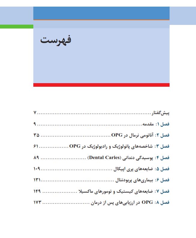 با توجه به گسترش استفاده از عکسهای OPG، چگونگی نهایت استفاده از آنها نیز مورد نیاز دندان پزشکان و پزشکان خواهد بود. از همین حیث این کتاب، درصدد برآوردن نیاز یک دندانپزشک یا پزشک در سطح حرفهای است تا بتواند از دل یک OPG، نهایت اطلاعات مورد نیاز برای طرح درمان را بیابد. درصورتی که تشخیص درست داده نشود، امکان تصمیم نهایی برای درمان نیز وجود ندارد. به همین علت در این کتاب تشخیصهای افتراقی مربوط به عکسهایOPG را در کنار هم خواهید دید تا بتوانید در مقام مقایسه، تسلط خوبی در تفسیر یکOPG داشته باشید. یکی از مسائل گریبانگیر یک پزشک یا دندانپزشک در تفسیر عکسهای رادیولوژیک، وجود آرتفکت (Artefact) در عکس است که این کتاب، مجموعهی خوبی از این نمونهها را علاوه بر نسخهی اصلی این کتاب از کتب و مقالات دیگر در خود جای داده است.